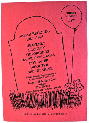 "Sarah Records is owned by no one but us, so it's OURS to create and destroy how we want and we don't do encores. We want to burn in bright colours and go pop, to be giddy, impulsive and silly, to kiss people in new places— EXQUISITELY— and DARE to tear things apart. The first act of revolution is destruction and the first thing to destroy is the past. Scary. Like falling in love; it reminds us we're alive."